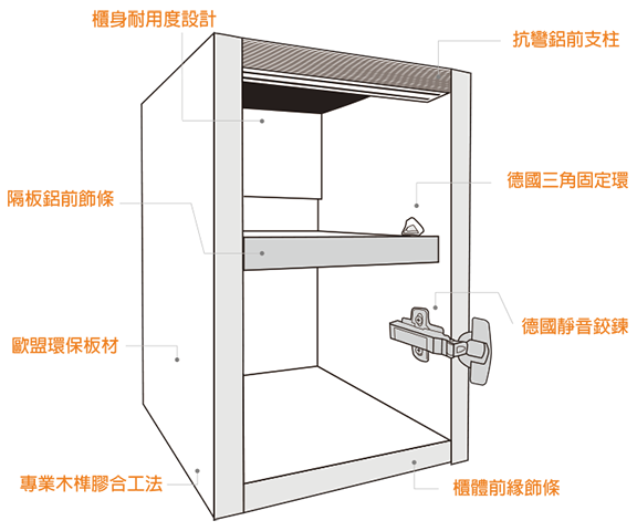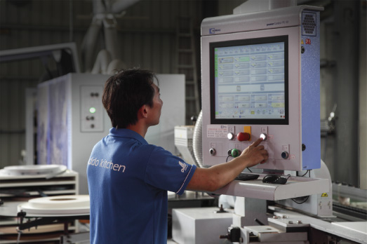 引進各式最新專業機器設備,獨家研發技術出自精密的製作流程,在關鍵的研發、生產、製造設計上能卓越不凡。擁有經驗豐富的專業師傅,結合細膩的木榫工法與自動化機器設備,讓廚具結構更紮實,延長廚具使用壽命;嚴格掌握物料、施工流程的專案經理人,則隨時提供客戶專業服務。