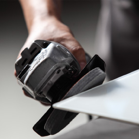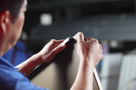 從量測、裁切、打磨、拋光、組裝...等程序皆需要仰賴30多年專業經驗的師傅用眼睛和手的觸感去檢測判斷,針對細節做微調修正,由裡到外都是心手合一的專注力。