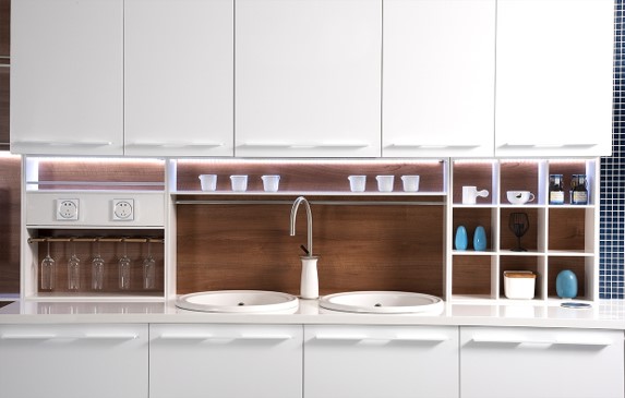 充分利用每一寸平、立面空間,上下吊櫃間的腰牆設計,壁牆空間立面設計....提供更多的儲存空間、工作區域和功能性。